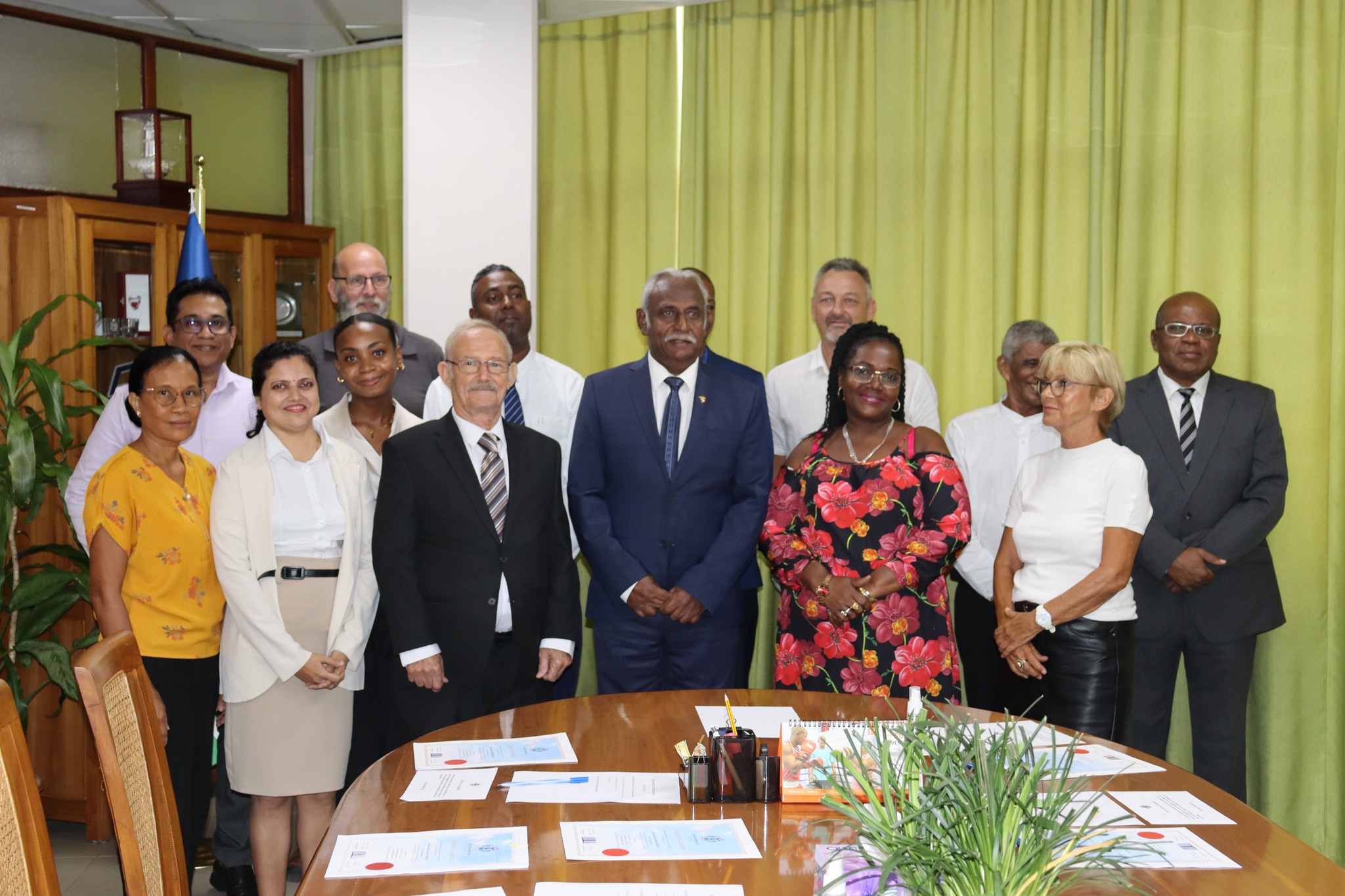 The Minister was accompanied by Major Gerald Wong-Pool, Director of the National Information Sharing and Coordination Centre (NISCC), and Mrs. Mastura Shah-Faure, Executive Director of the Ministry of Internal Affairs, Ministers’ Secretariat.