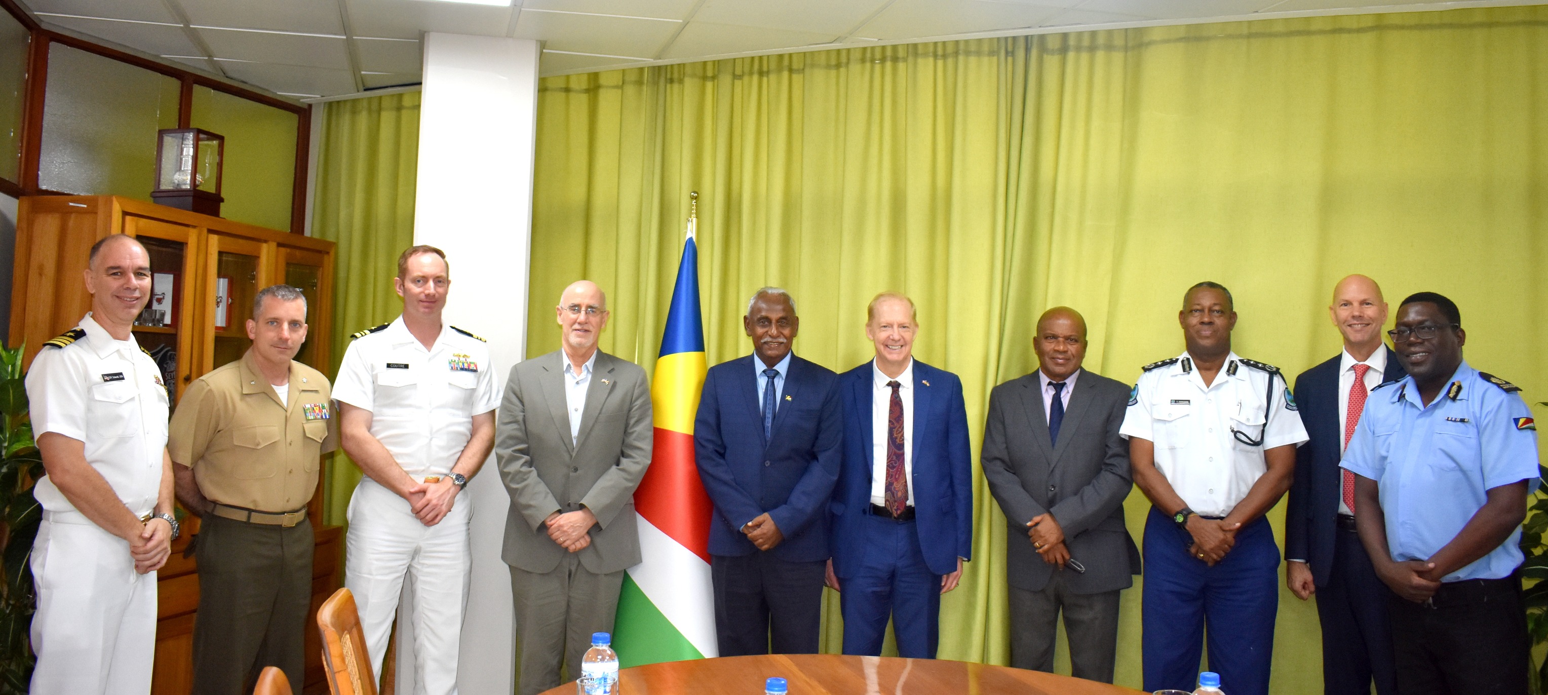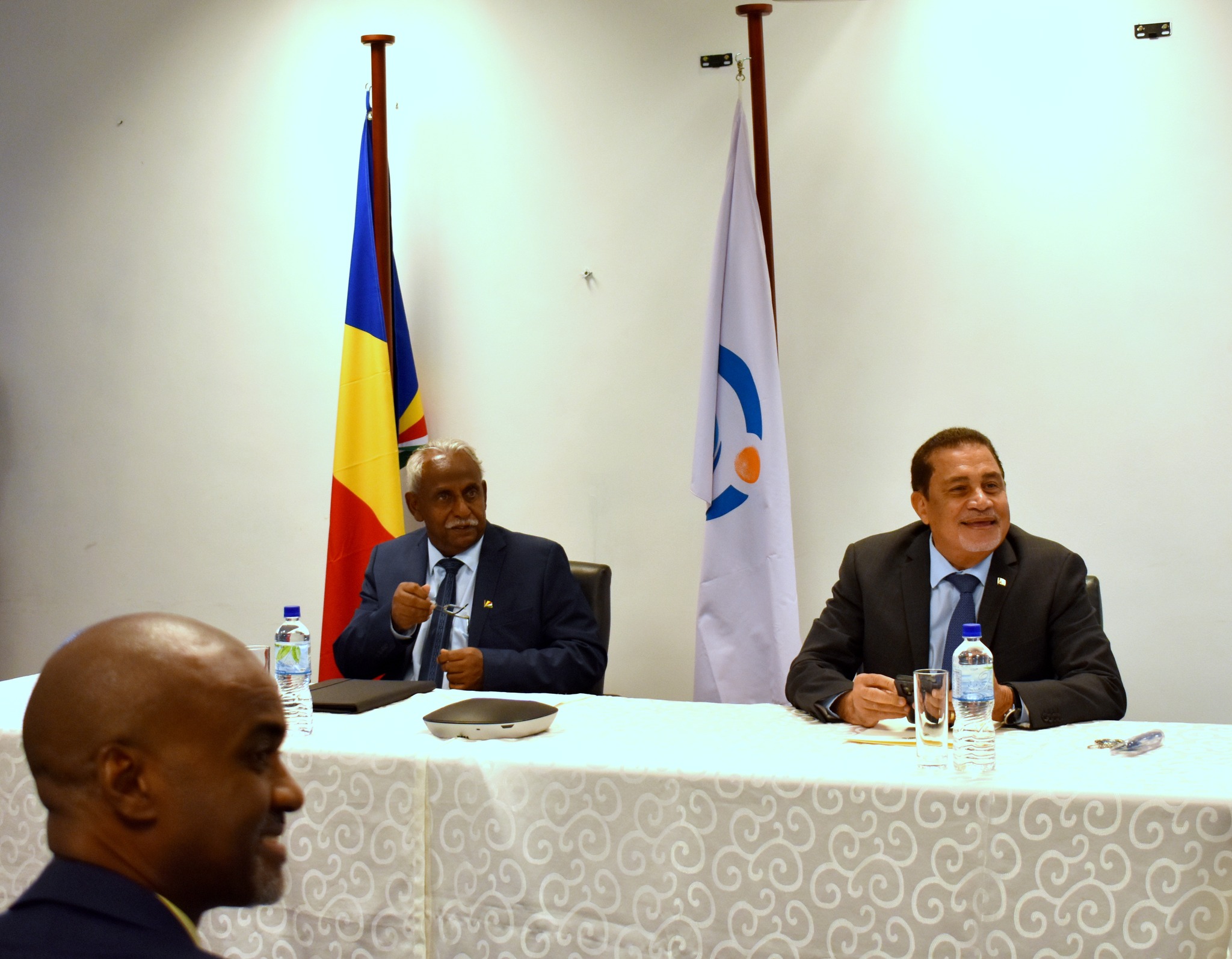 The Minister of Internal Affairs, Mr. Charles Fonseka, recently convened a crucial meeting with a delegation from the European Union (EU) and the United Nations Office on Drugs and Crime (UNODC) in Seychelles. Members of the delegation included Mr. Arun Ramduny, Ms. Pooja Bissoonauthsing and Ms. Elizabeth Onyango. The joint mission centered on bolstering operations both on land and at sea to counteract emerging threats to maritime security, particularly the escalating cases of piracy.