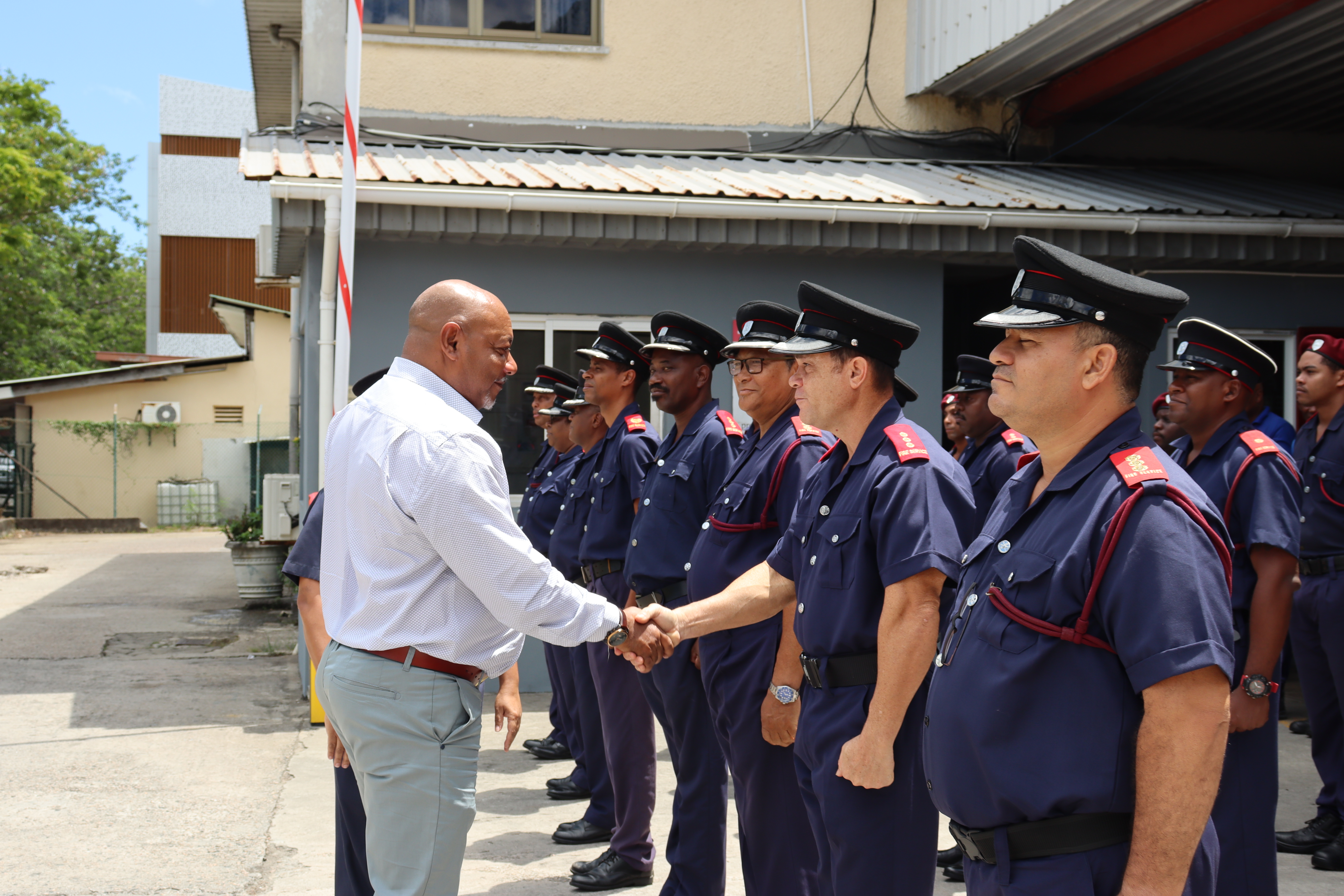 The Minister for Homeland Security and Civil Affairs, Mr. James Camille, continued his official familiarisation programme with visits to the Anse Royale Fire Station, the Public Order and Tactical Response Unit at Petit Paris, and the Scientific Support and Crime Record Bureau at Bois de Rose.