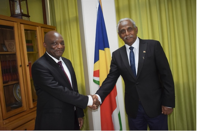The Minister for Internal Affairs received a courtesy call from the newly accredited High Commissioner of Tanzania Dr. John Simbachawene. The meeting focused on discussions of maritime security and highlighted the successful relationship between the Tanzania Prison Services(TPS) and the Seychelles Prison Services(SPS).