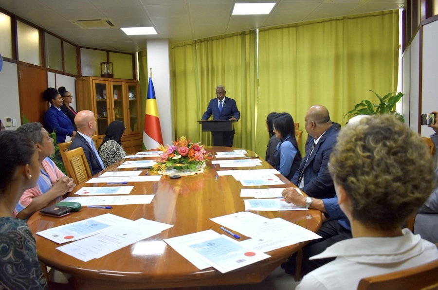 The Minister addressed the group stating that, “despite your various backgrounds and origins, you are being called upon to be ambassadors of your new country. Make good use of your knowledge and experience to promote Seychelles, to serve its’ interests and participate actively towards its development through volunteering during times of need and contributing towards the well-being of your respective communities as a law-abiding citizen”.