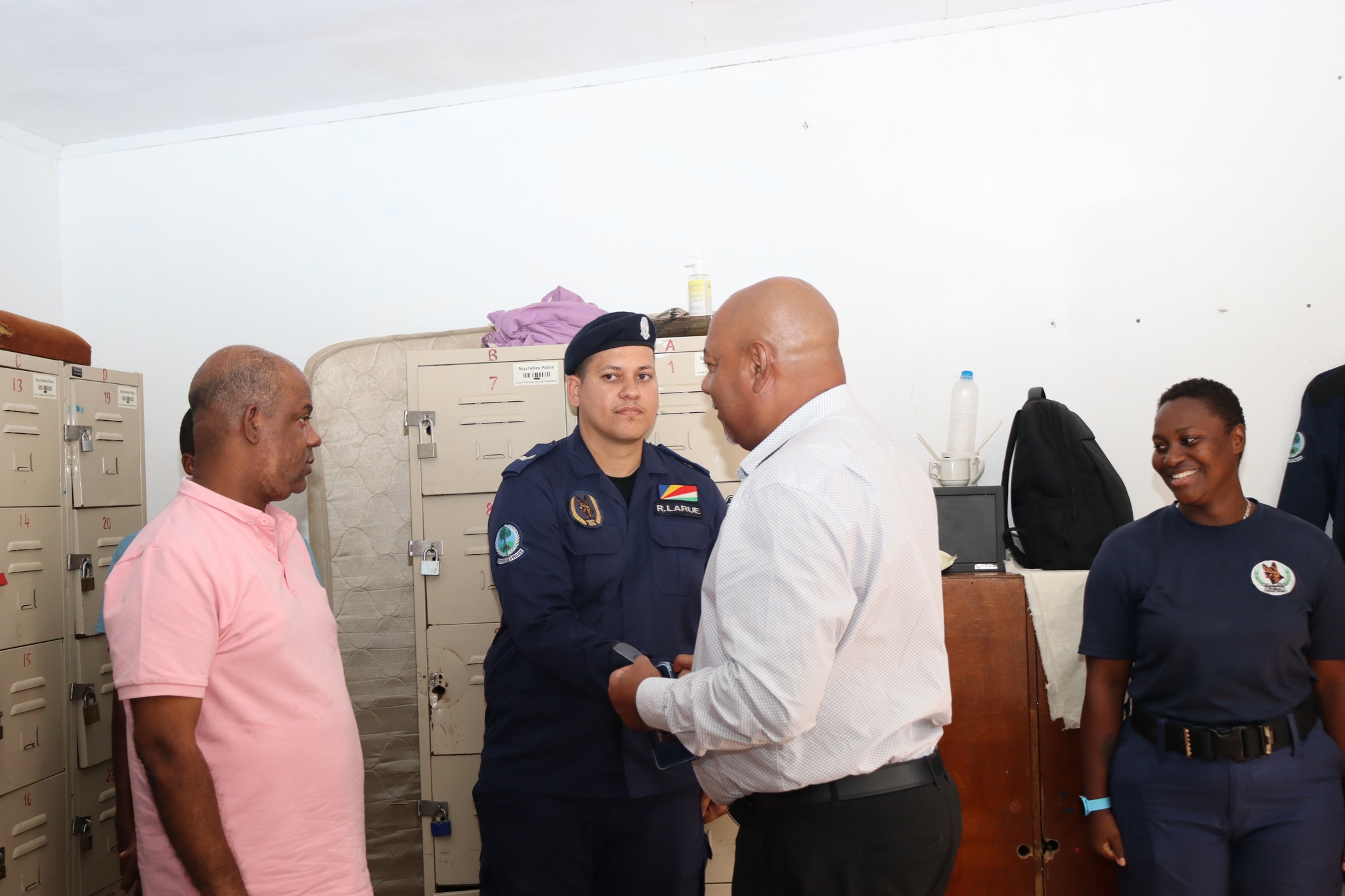The Minister of Homeland Security and Civil Affairs, Mr. James Camille, conducted his final series of visits to key departments, including the Seychelles Prison Services administrative teams, the Seychelles Police Dog Unit and the Police Academy.