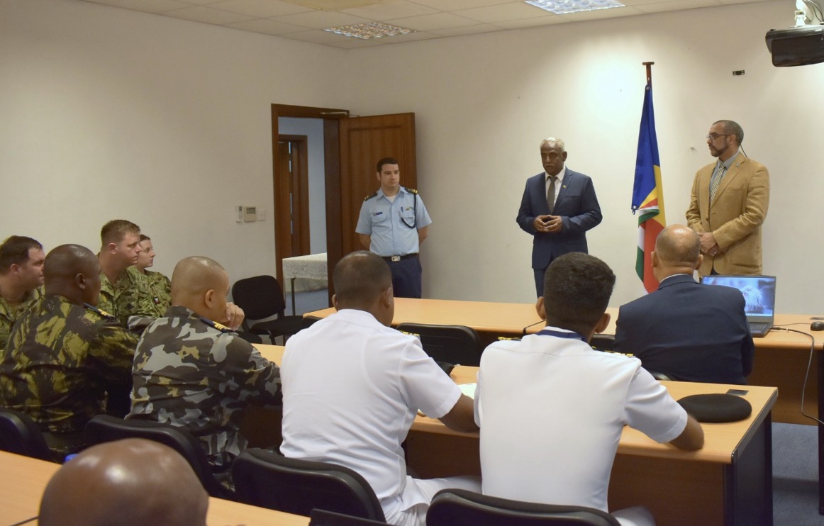 The Minister paid a visit on the first day of the CUTLASS EXPRESS exercise at the REFLECS3 Center. During his visit the Minister Fonseka greeted the participants and shared words of encouragement for the duration of this exercise. He stated that, “it is our pleasure to host you all for the in for the CUTLASS EXPRESS, I am hopeful that the exercise yields results we can learn from and increase regional cooperation”. The Minister was accompanied by the Director the National Information Sharing & Coordinating Centre (NISCC) & REFLECS3, Captain Gerald Wong Pool and the Director the Regional Co-Ordination Centre (RCOC) Captain Sam Gontier.