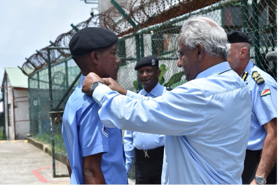 The Minister for Internal Affairs Mr. Charles E. Fonseka attended the Prison Service Week ceremony at Montagne Posee Prison yesterday afternoon. The Seychelles Prison Service (SPS) recognized employees for their exceptional work and confirmed new recruits into posts. The event also recognized retiring and departed staff of the SPS. Minister Fonseka and the Commissioner of Prisons Mr. Raymond St Ange, cut the ribbon to a new recreational room equipped with a Play Station 4 console for inmates who demonstrate good behavior.